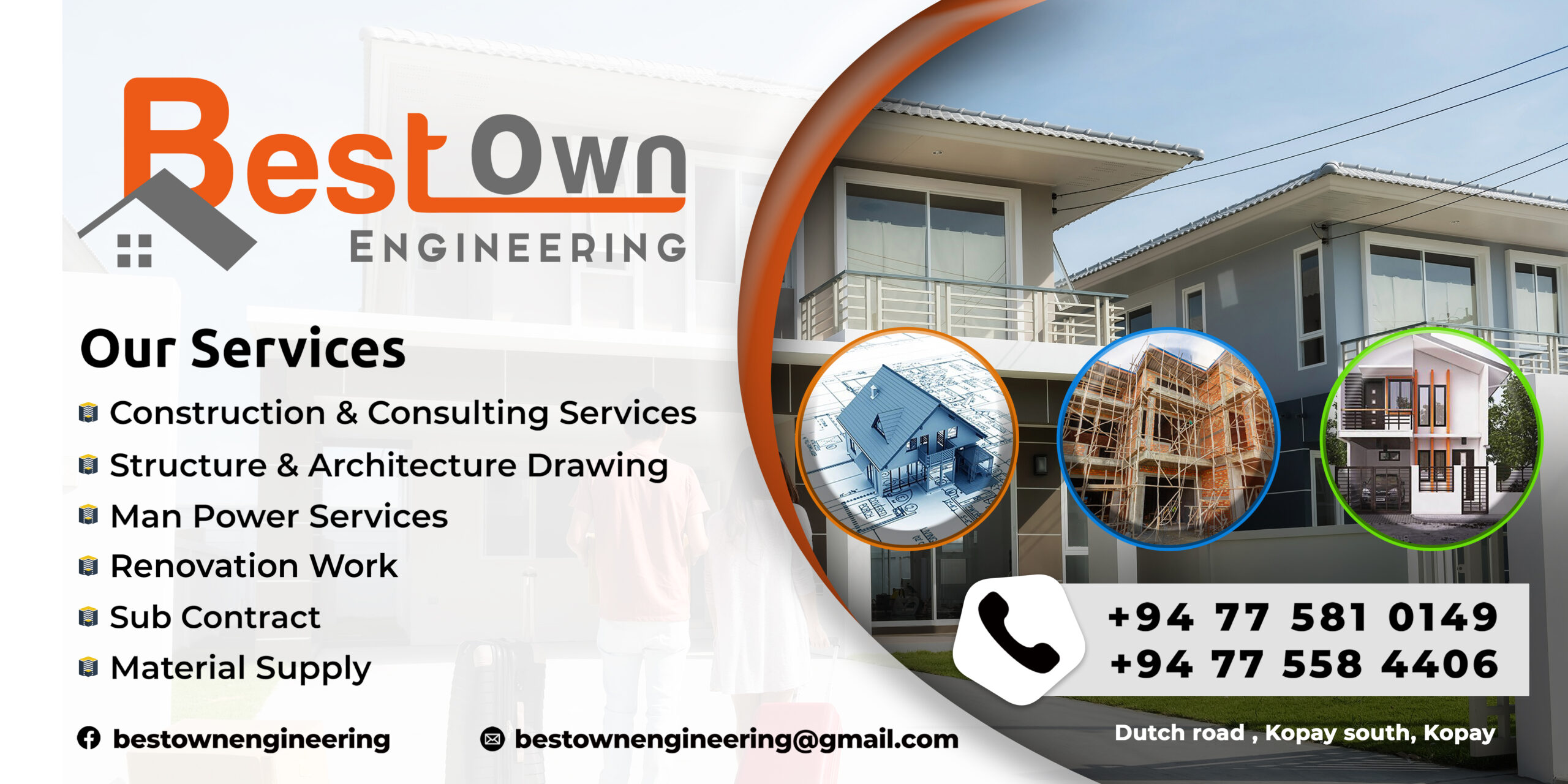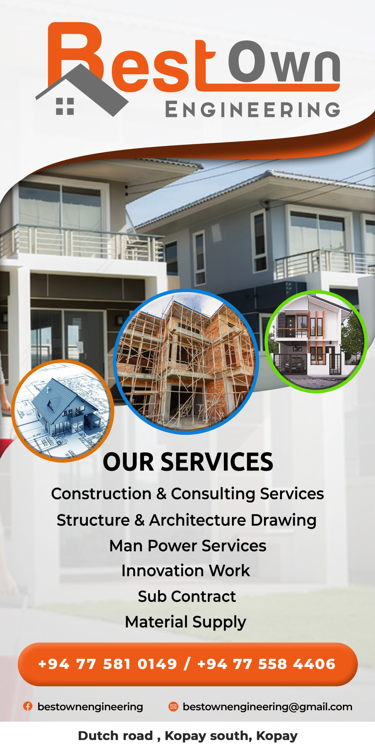 We developed a cohesive and professional brand identity for BestOwn Engineering, Kopay, featuring logo design, poster design, and business card design. The visuals reflect the company’s reliability and expertise in construction, architecture, and renovation services-creating a strong, modern, and trustworthy image across all platforms.