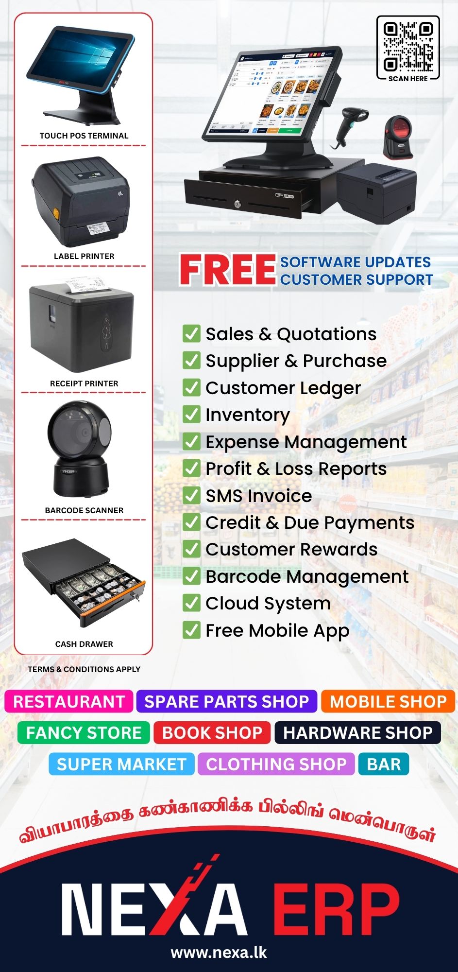 We designed a modern and engaging flyer for Nexa ERP, promoting their POS cloud software with a clean layout and clear call-to-action. The design highlights key features such as billing, sales tracking, and customer support, making it visually appealing and informative for business owners looking for efficient accounting solutions.