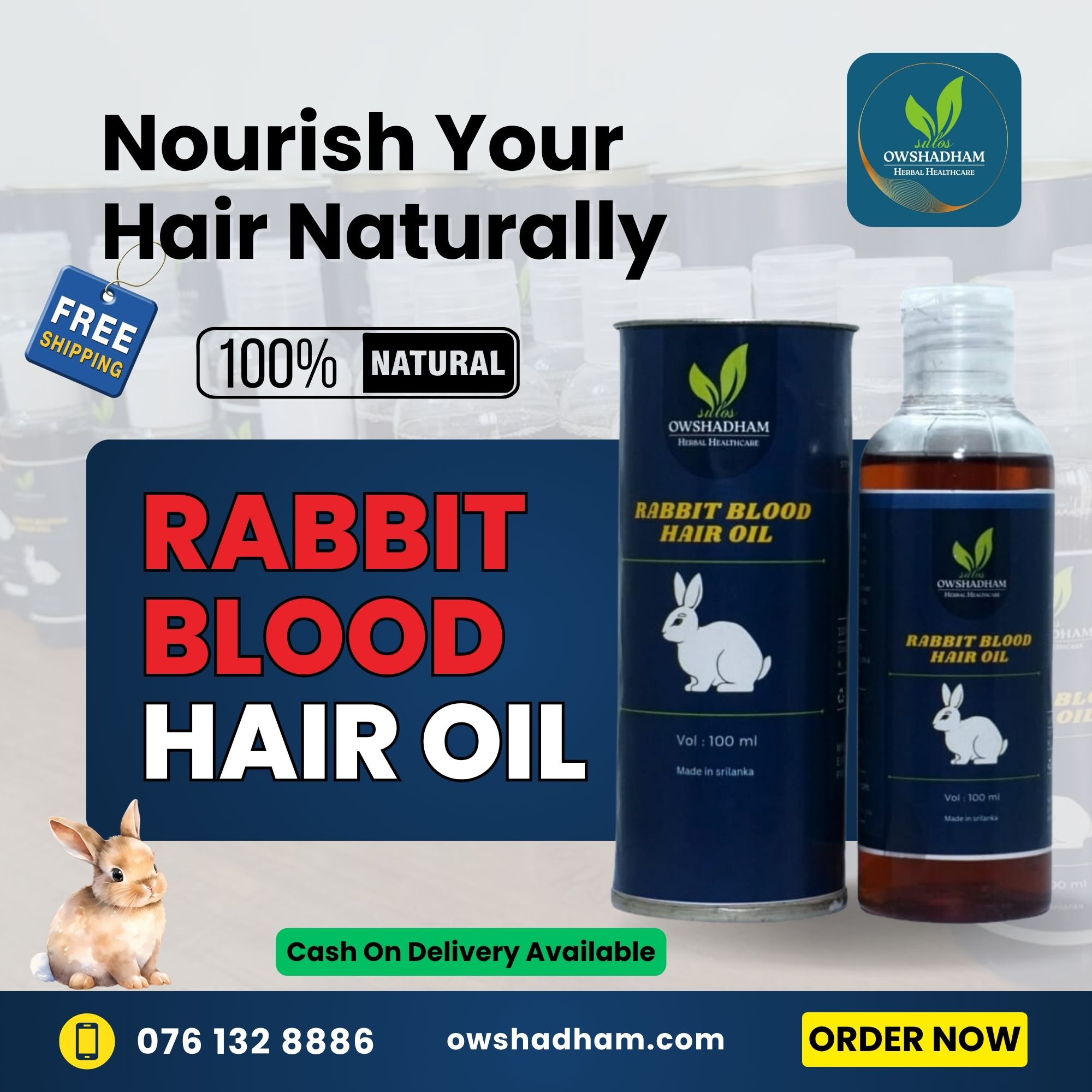 We designed a clean and attractive poster for Owshadham Herbal Healthcare, promoting their Rabbit Blood Hair Oil product. The design emphasizes natural beauty, 100% herbal ingredients, and customer trust with clear visuals and vibrant branding. It effectively communicates product benefits while maintaining a professional and organic aesthetic.