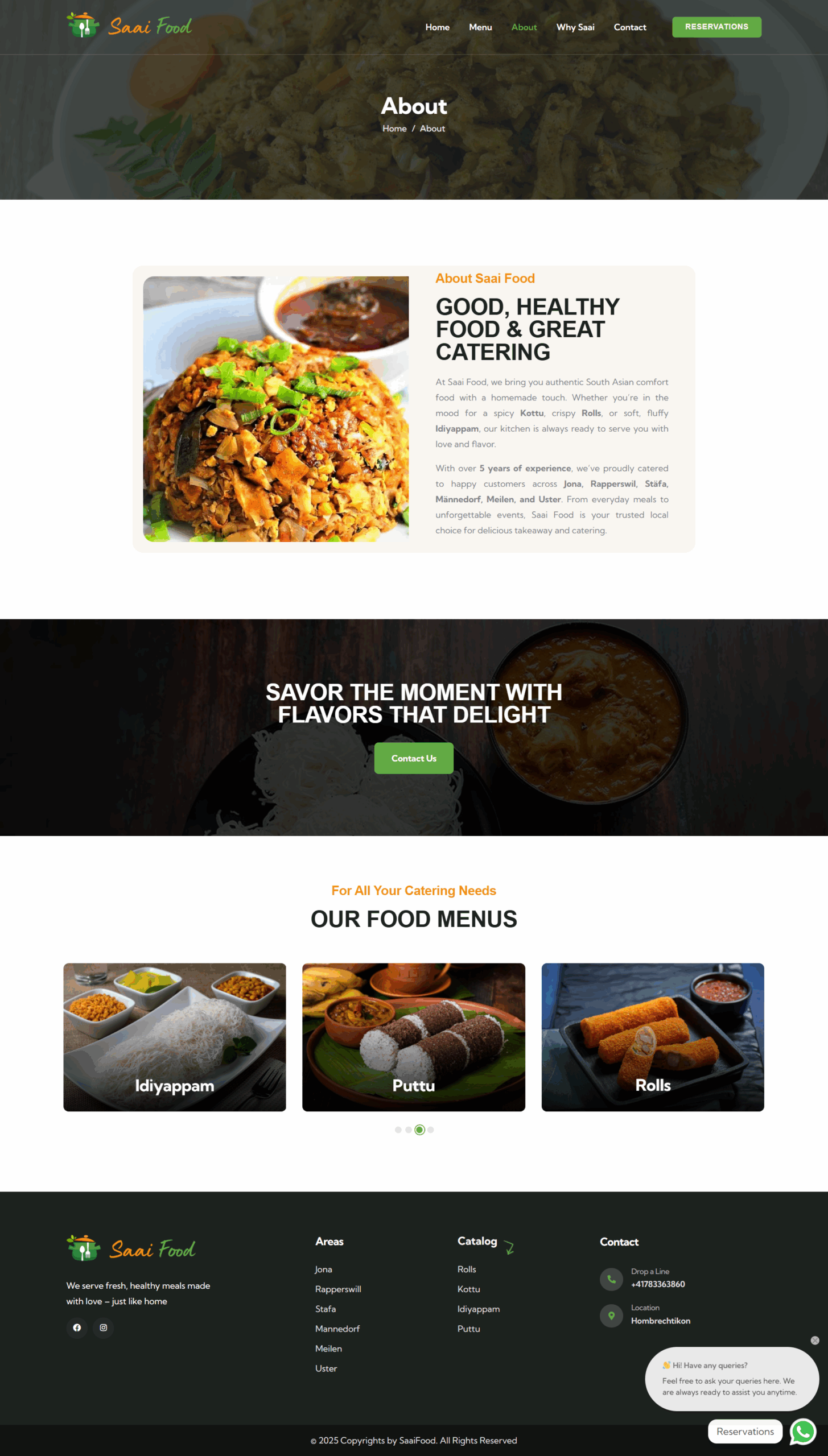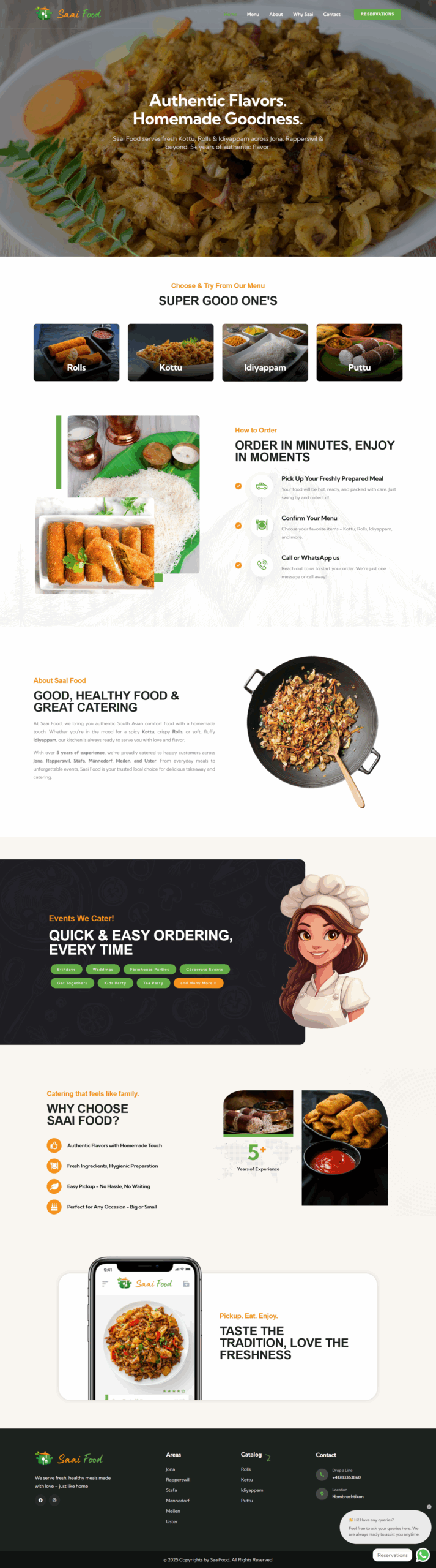 We designed a clean and appetizing website for Saai Food, Switzerland, a brand that serves fresh and healthy homemade-style meals. The design emphasizes freshness, warmth, and authenticity - reflecting the brand’s promise of “meals made with love, just like home.” The site delivers a smooth browsing experience, helping customers easily explore menus and place orders online.