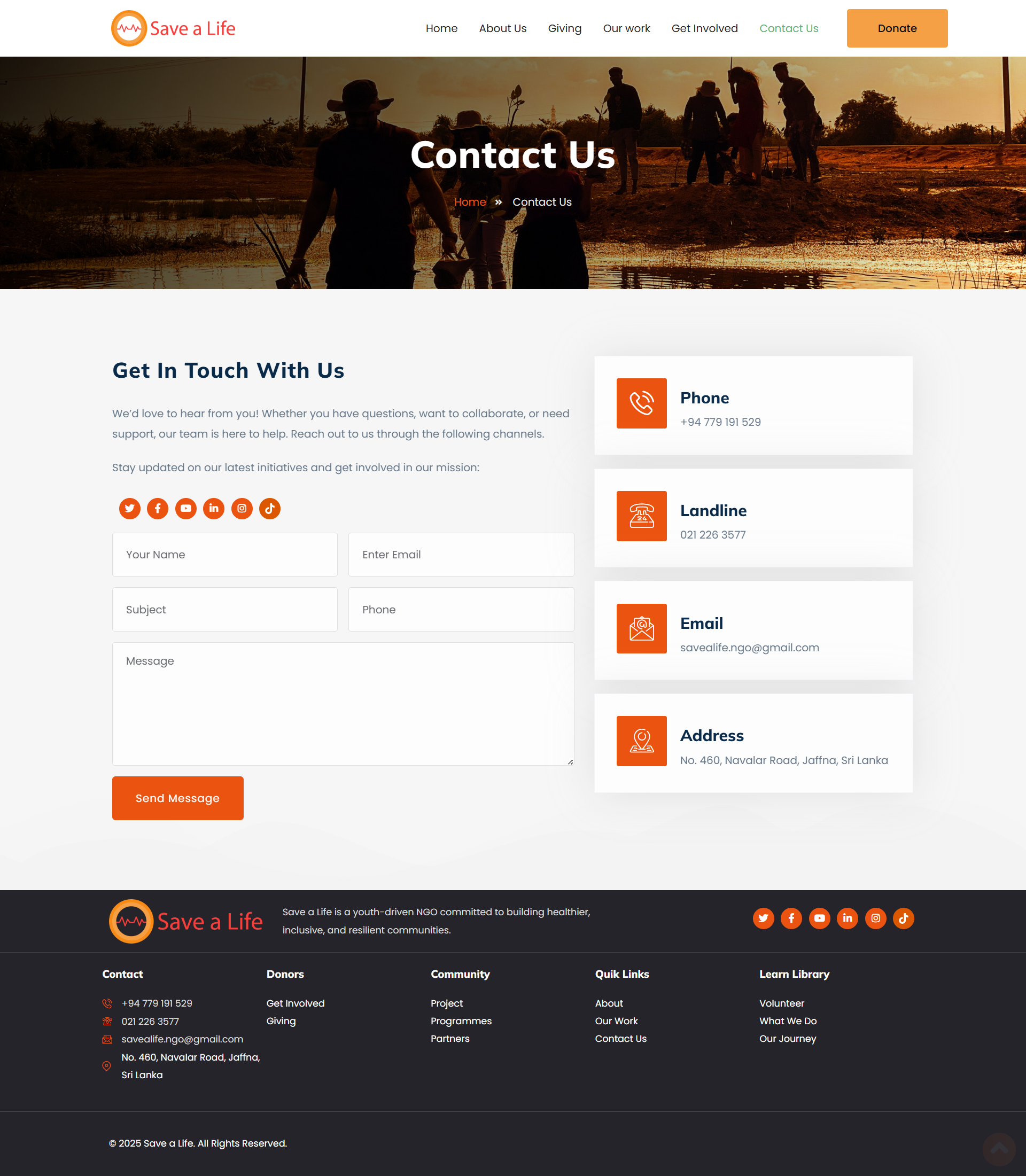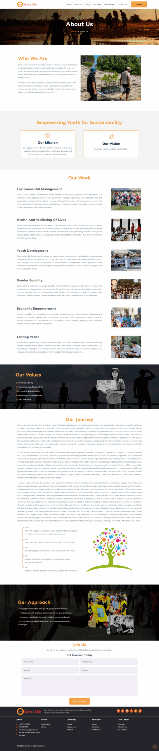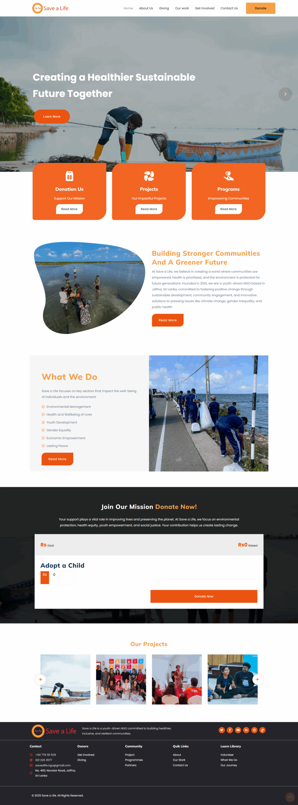 We designed a compassionate and impactful portfolio website for Save A Life NGO, a humanitarian organization dedicated to saving lives through community outreach, healthcare initiatives, and social awareness programs. The design emphasizes empathy, transparency, and trust - featuring clear donation calls-to-action, success stories, and a modern layout that strengthens their online presence and mission visibility.