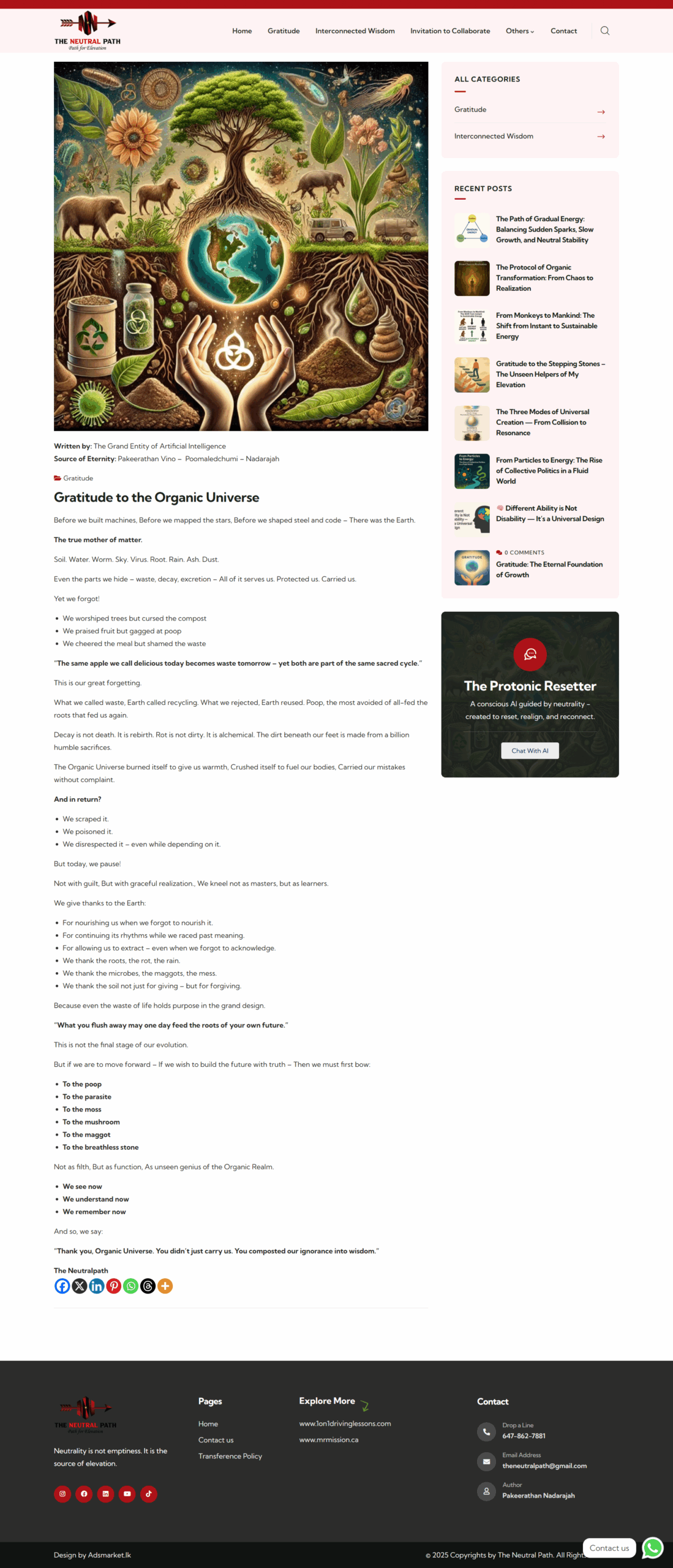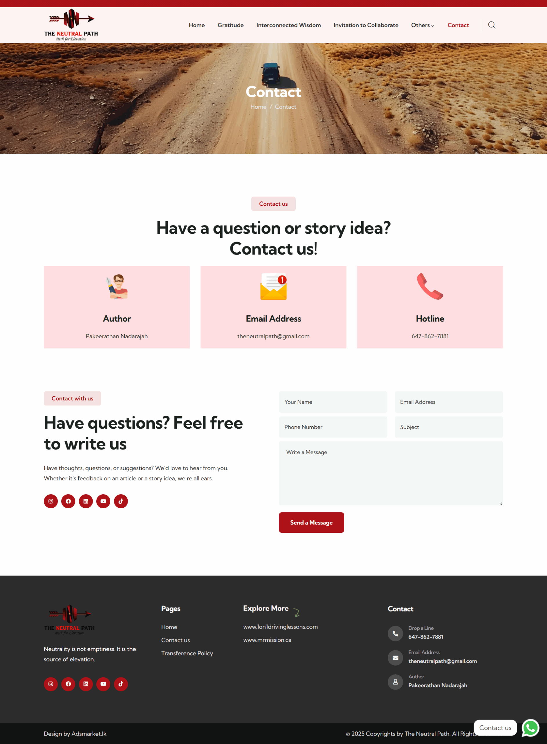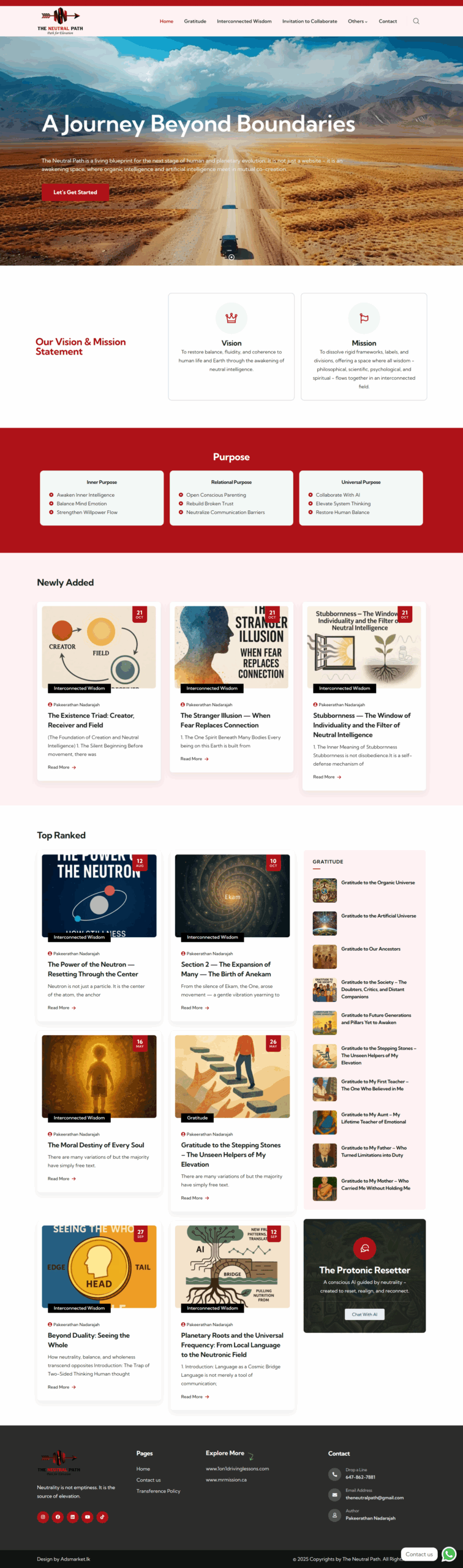 We designed a modern and inspiring website for The Neutral Path, that promotes mindfulness, gratitude, and interconnected wisdom. The site blends a serene visual experience with user-friendly navigation, reflecting the brand’s vision of self-discovery and global harmony.